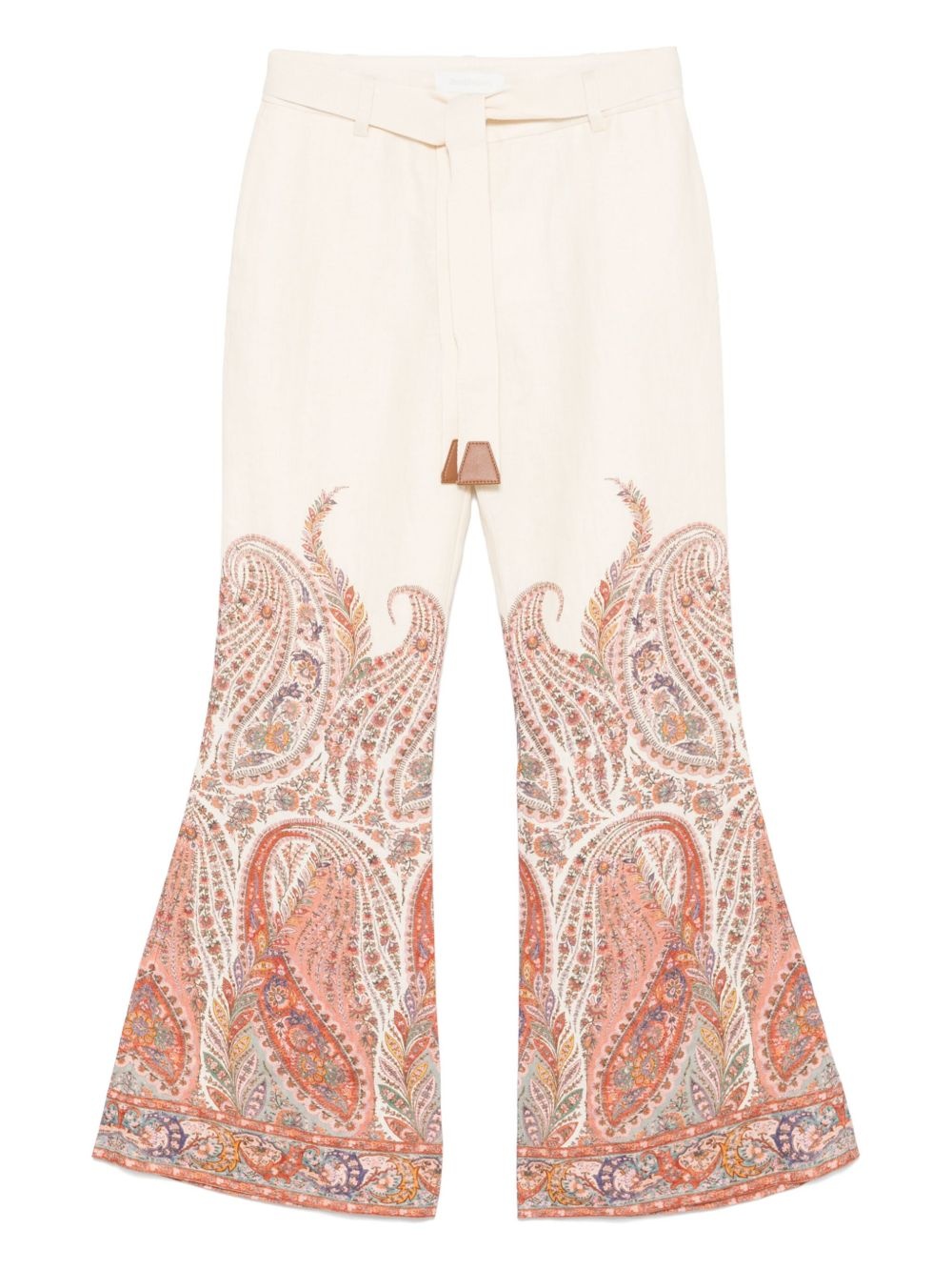 paisley-print trousers Highlights - Beige - Front lace-up fastening - Belt loops - Two rear welt pockets Imported Composition Outer: Linen/Flax 100% Washing instructions Dry Clean Only
