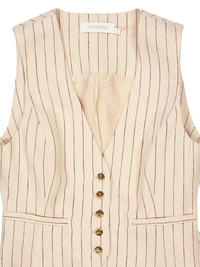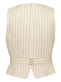 pinstripe button vest Highlights - Cream - Pinstripe - Button fastening - Back buckle - Front pockets Imported Composition Linen/Flax 100% Washing instructions Read Manufacturer Guidelines