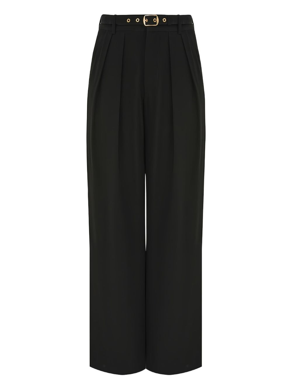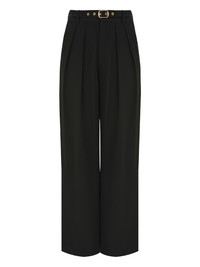 pleated belted trousers Highlights - Black - Pleated front - High waist - Belt detail - Gold-tone buckle - Wide leg Imported Composition Lining: Viscose 100% Outer: Polyester 100%, Viscose 100% Washing instructions Dry Clean Only