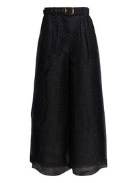 polka-dot belted trousers Highlights - Black - Polka-dot pattern - Belt - Gold-tone hardware - Sheer panels - Buckle fastening Imported Composition Linen/Flax 53%, Silk 47% Washing instructions Read Manufacturer Guidelines