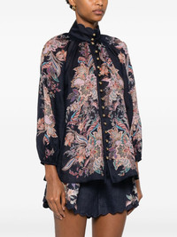 Rhiannon Billow blouse Highlights - Navy blue - Front button fastening - Long sleeves - Elasticated cuffs - Paisley print Imported Composition Polyester 100%, Ramie 100% SIZE & FIT Model measurements Height 5 ft 11 in(1.8 m) Bust/Chest 31.49 in(80 cm) Hips 35.82 in(91 cm) Waist 24.8 in(63 cm) FittingInformation Designed to be unstructured, offering a loose fit throughout Made from a lightweight non-stretch fabric