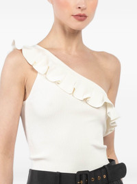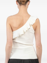 ruffle top Highlights - White - One-shoulder - Sleeveless Imported Composition Viscose 76%, Polyamide 21%, Elastane 3% SIZE & FIT FittingInformation Designed for a close fit throughout Made with a lightweight knit, this piece offers some stretch Washing instructions Hand Wash