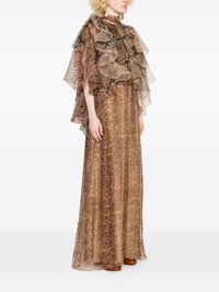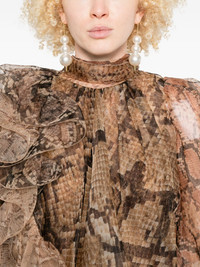 ruffle-trimmed snake-print dress Highlights - Brown - Snake print - Layered ruffles - High neck - Long sleeves - Midi length Imported Composition Silk 100% SIZE & FIT Model measurements Height 5 ft 9 in(1.75 m) Bust/Chest 34.64 in(88 cm) Hips 36.61 in(93 cm) Waist 26.37 in(67 cm) Washing instructions Read Manufacturer Guidelines