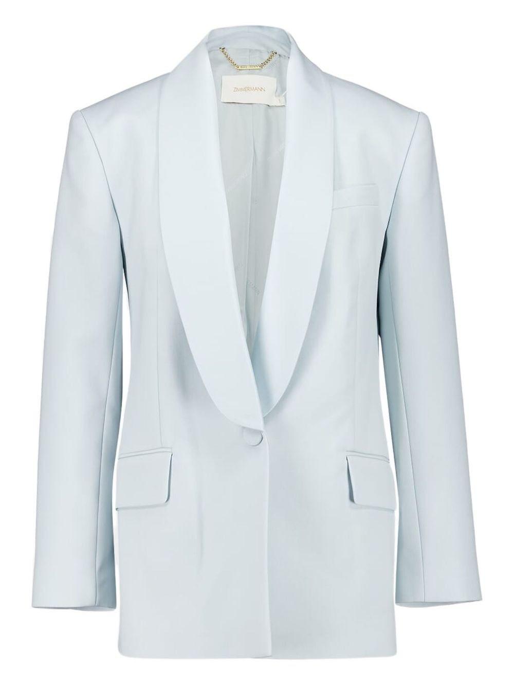 shawl-collar single-breasted jacket Highlights - Sea foam - Shawl collar - Single-breasted - Single button closure - Flap pockets - Back vent Imported Composition Fabric 100% Washing instructions Read Manufacturer Guidelines