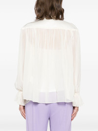 shimmering buttons blouse Highlights - Cream white - Button fastening - Gathered detailing Imported Composition Viscose 100% SIZE & FIT Model measurements Height 5 ft 10 in(1.78 m) Bust/Chest 24.4 in(62 cm) Hips 35.43 in(90 cm) Waist 31.88 in(81 cm) FittingInformation Designed to be unstructured, offering a loose fit throughout Made from a lightweight non-stretch fabric