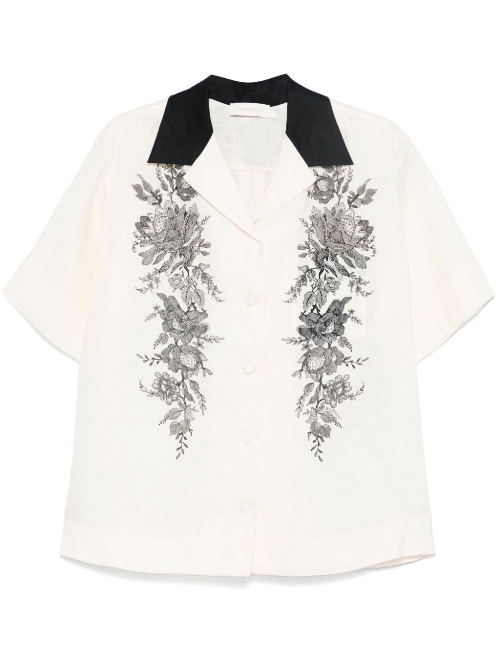 short-sleeve shirt Highlights - Light beige - Front button fastening - Chest patch pocket - Floral print - Cuban collar Imported Composition Linen/Flax 100% SIZE & FIT FittingInformation Designed to be unstructured, offering a loose fit throughout Made from a midweight non-stretch fabric