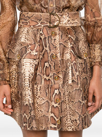 snakeskin-effect belted skirt Highlights - Brown - Snakeskin print - Belted waist - Button fastening - Flap pockets Imported Composition Outer: Silk 53%, Cotton 47% Lining: Viscose 100% SIZE & FIT Model measurements Height 5 ft 10 in(1.77 m) Bust/Chest 33.07 in(84 cm) Hips 37 in(94 cm) Waist 24.8 in(63 cm) Washing instructions Dry Clean Only