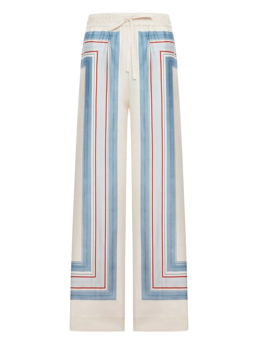 striped drawstring trousers Highlights - Beige - Elasticated waist - Drawstring fastening - Side seam pockets - Striped pattern Imported Composition Silk 100% Washing instructions Dry Clean Only