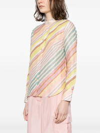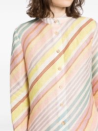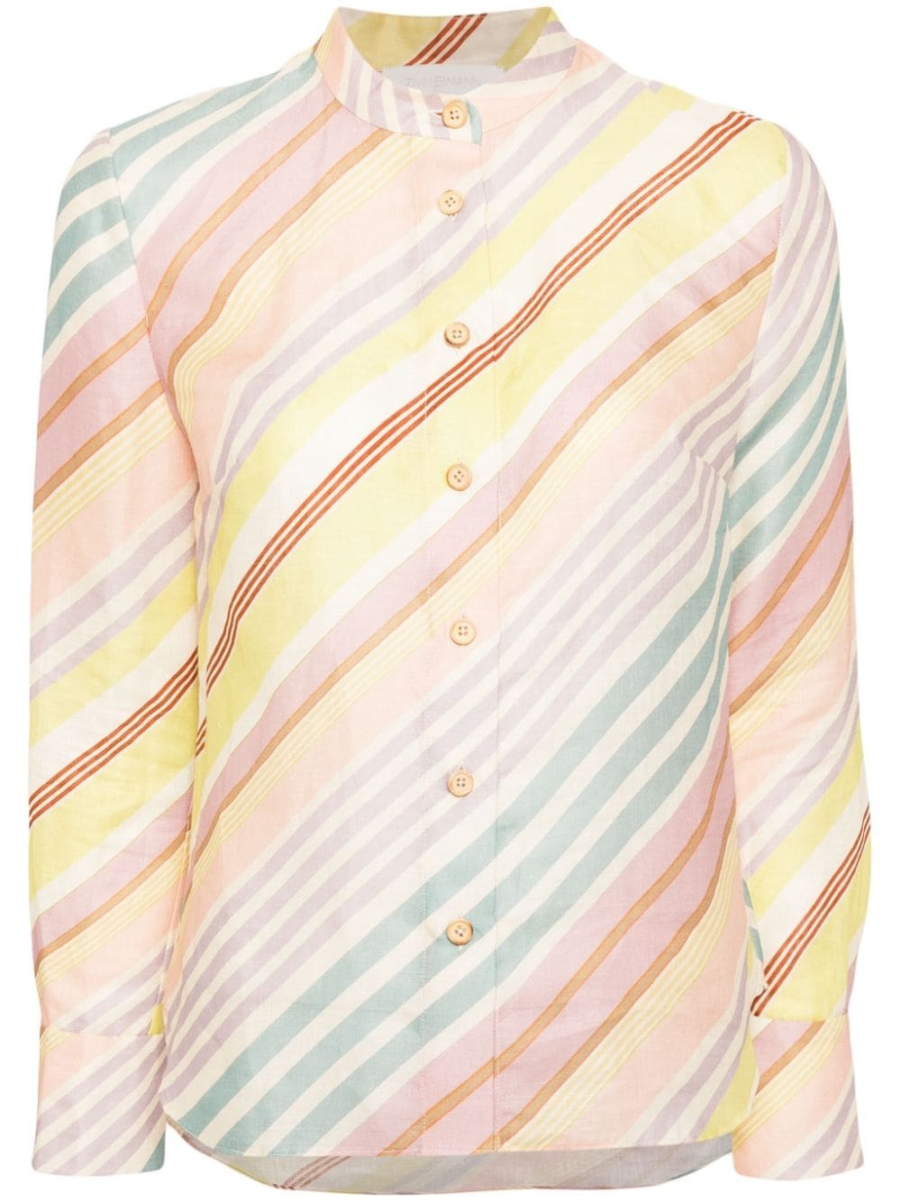 striped linen shirt Highlights - Multicolour - Linen - Stripe detailing - Band collar - Front button fastening - Long sleeves - Buttoned cuffs - Curved hem Imported Composition Linen/Flax 100% SIZE & FIT Model measurements Height 5 ft 10 in(1.78 m) Bust/Chest 32.67 in(83 cm) Hips 37 in(94 cm) Waist 25.59 in(65 cm) FittingInformation Designed for a slim fit that sits just away from the body offering a close yet comfortable fit Made from a lightweight non-stretch fabric This piece fits true to size – take your usual size Washing instructions Dry Clean Only