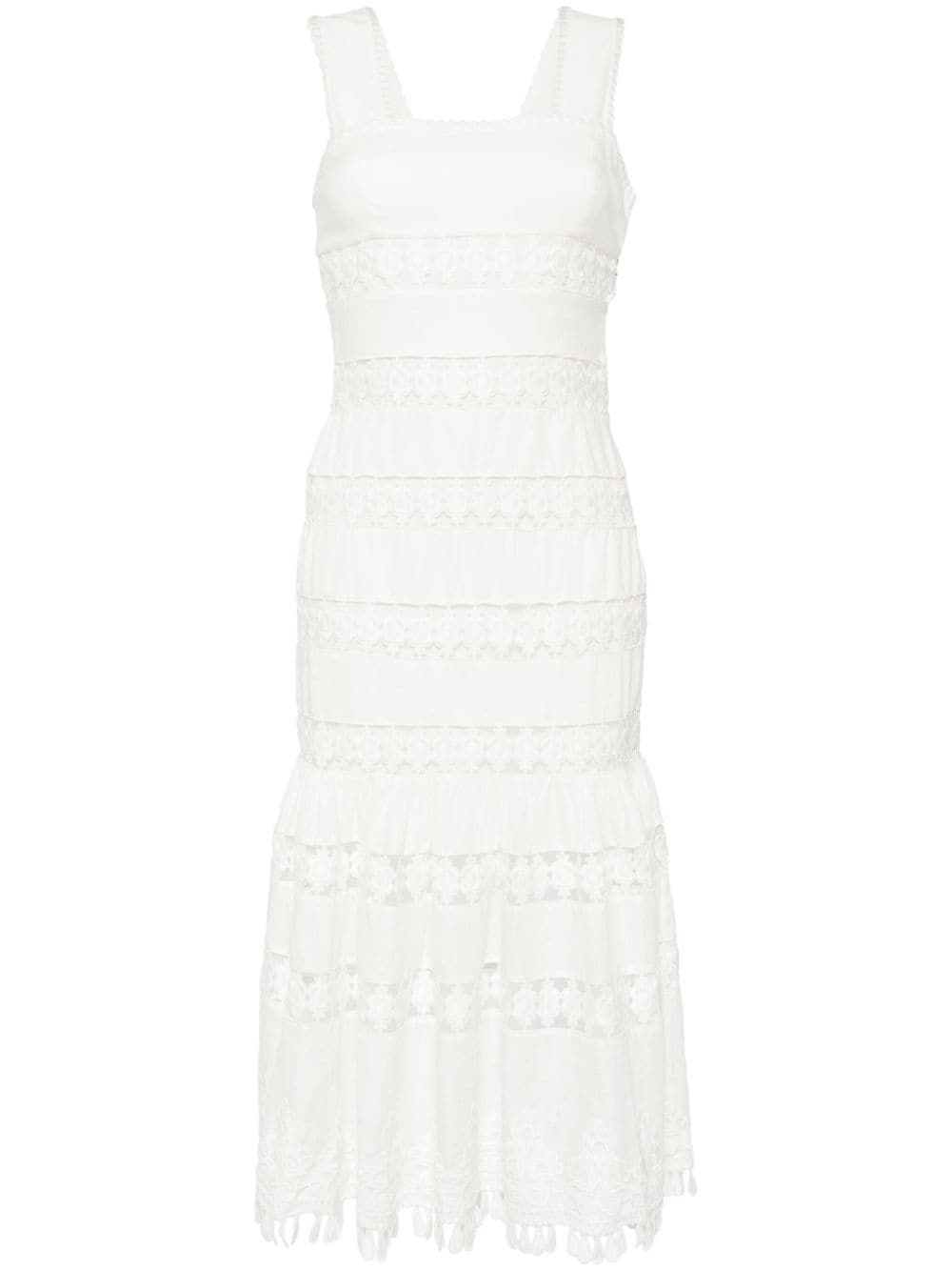 trimmed midi dress Highlights - Ivory white - Cotton/linen/flax - Cut-out detailing - Square neck - Sleeveless - Flared hem - Mid-length Imported Composition Lining: Cotton 100% Outer: Linen/Flax 100% SIZE & FIT Model measurements Height 5 ft 10 in(1.77 m) Bust/Chest 31.49 in(80 cm) Hips 35.43 in(90 cm) Waist 25.19 in(64 cm) FittingInformation Designed for a slim fit that sits just away from the body offering a close yet comfortable fit Made from a midweight non-stretch fabric This piece fits true to size – take your usual size Measurement HIPS 37 in(94 cm) LENGTH 48.81 in(124 cm) WAIST 28.34 in(72 cm) BUST 29.92 in(76 cm) Washing instructions Dry Clean Only