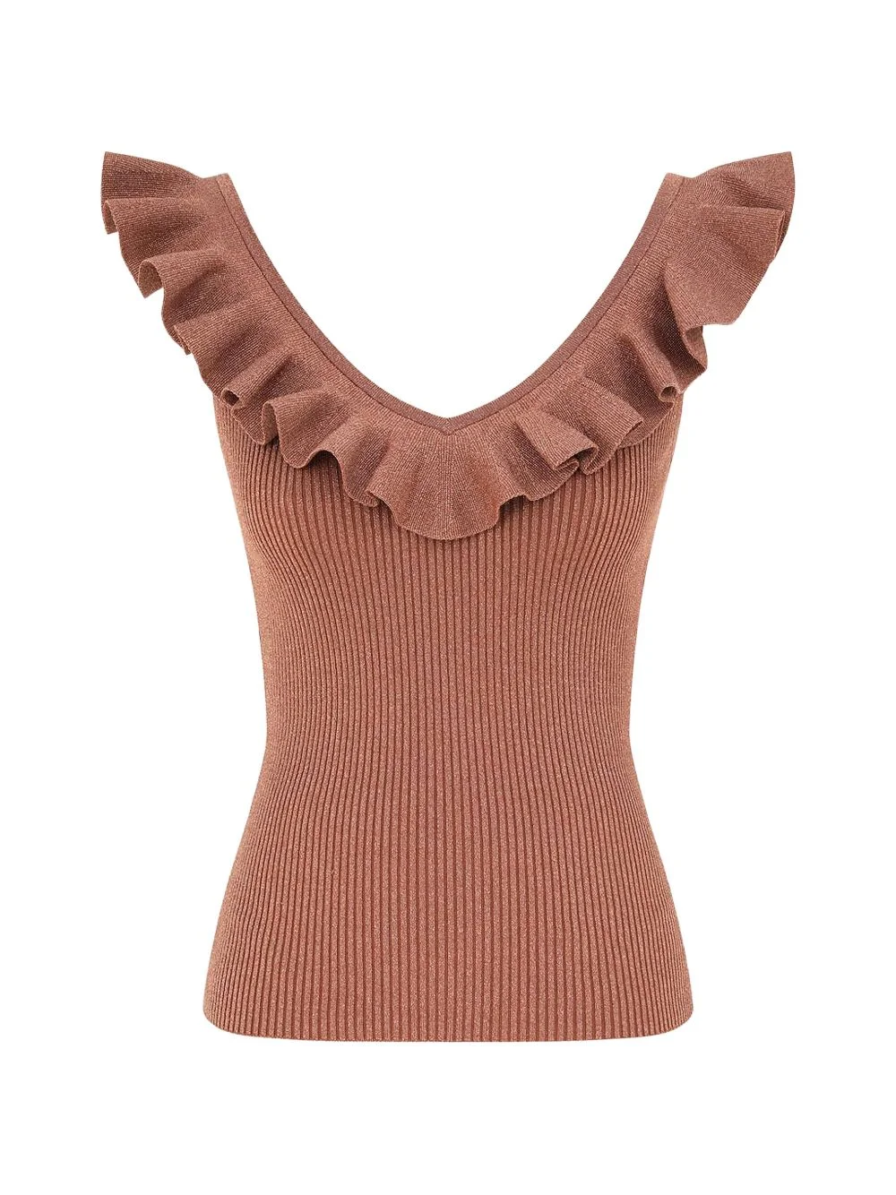 Wanderlust V-neck top Highlights - Brown - Ribbed knit - V-neck - Frill detail - Sleeveless Imported Composition Fabric 100% Washing instructions Read Manufacturer Guidelines