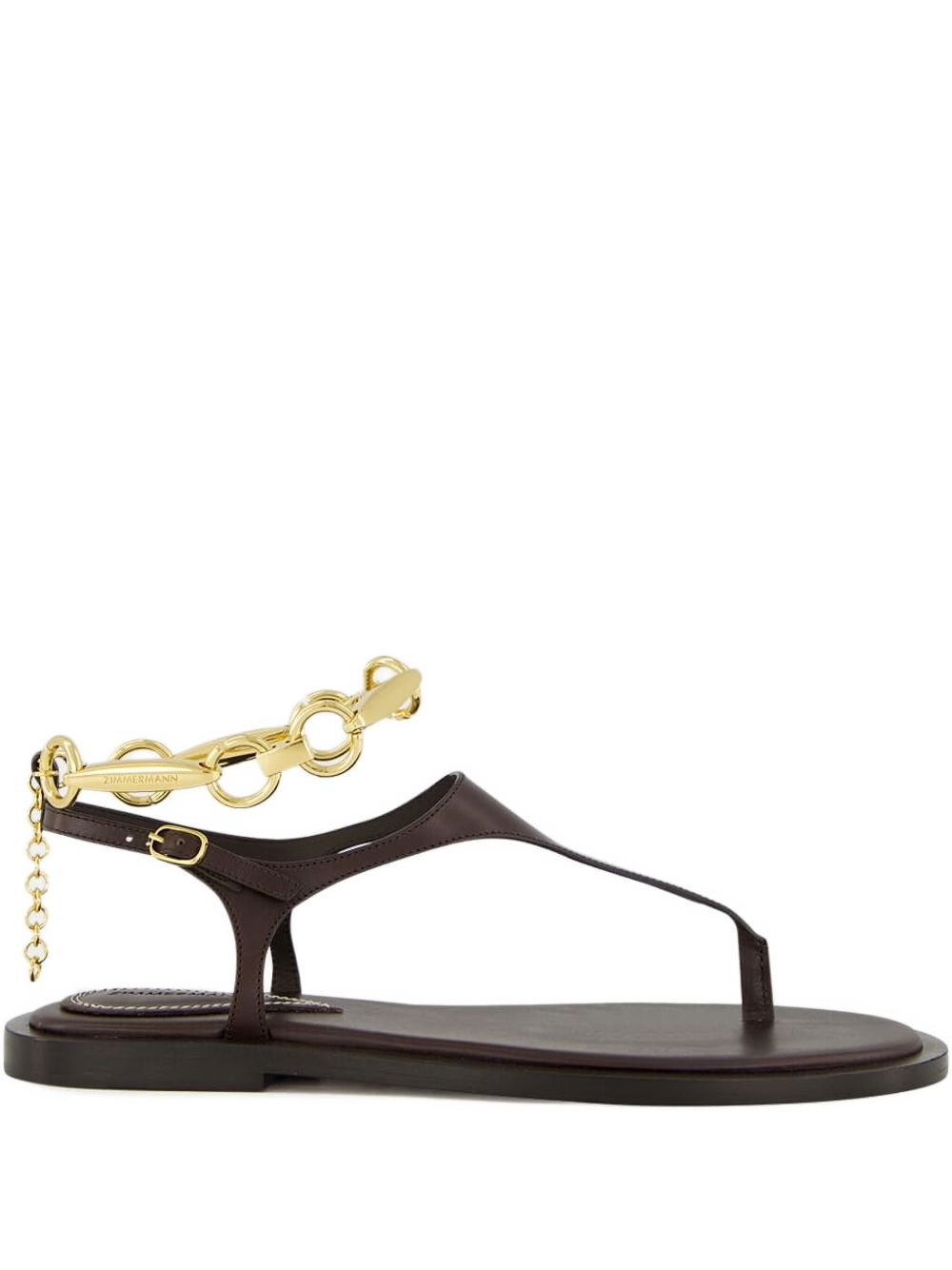 Wild chain-embellished leather sandals Highlights - Brown - Leather upper - Gold-tone chain embellishment - T-bar design - Buckle fastening Made in Italy Composition Lining: Calf Leather 95%, Polyurethane 5% Outer: Calf Leather 100% Sole: Calf Leather 100%