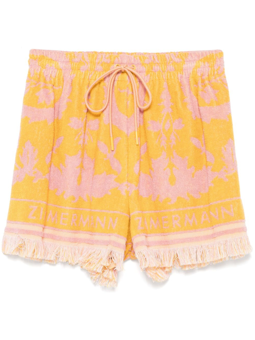 Wylie frayed cotton-terry jacquard shorts Mustard