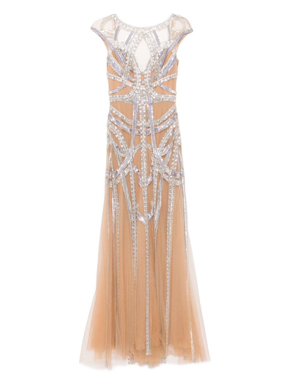 roads-embroidered flared gown Highlights - Almond beige - Concealed rear hook and zip fastening - Sleeveless - Round neck Imported Composition Outer: Polyamide 100% Lining: Silk 100% Washing instructions Dry Clean Only