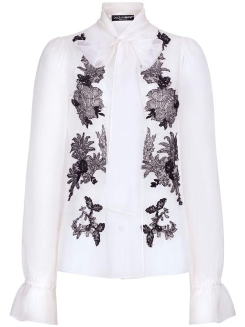 lace-appliqué silk-blend shirt
