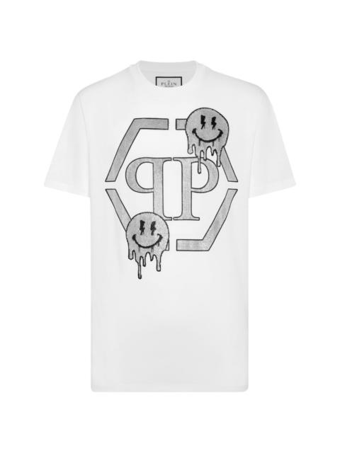 rhinestone-logo cotton T-shirt