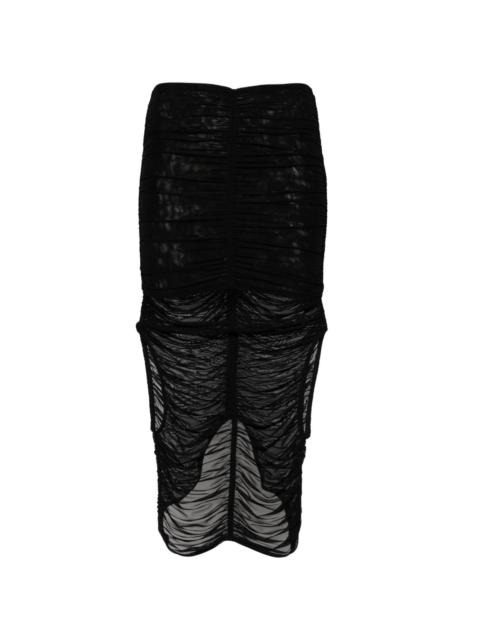draped mesh midi skirt