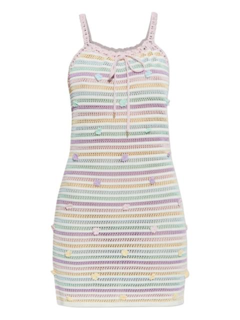 striped crochet-knit mini dress