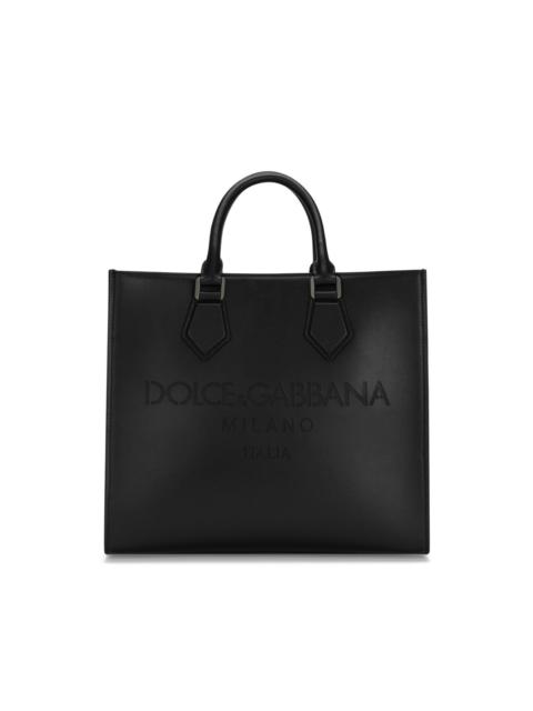 logo-debossed leather tote bag