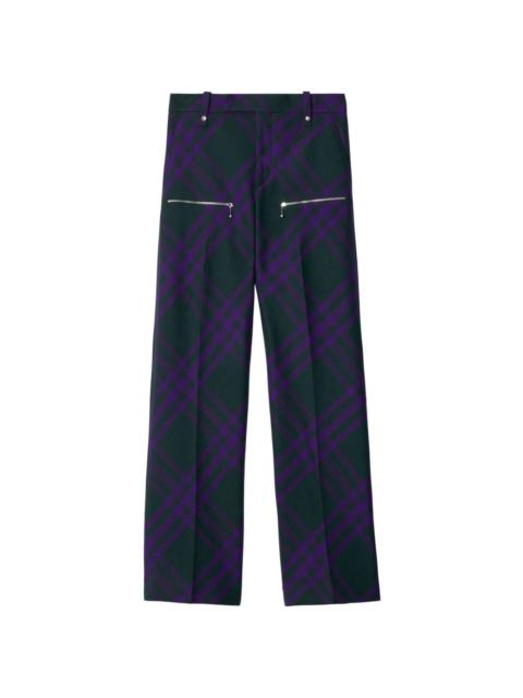 check-pattern wool trousers