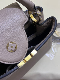 Louis Vuitton Capucines BB Galet Taurillon • Made of full‑grain Taurillon calf leather • Color: Galet (soft gray-beige) • Gold-tone hardware • Carry: top handle + removable/adjustable strap Size: • Length: 27 cm • Height: 18 cm • Width: 9 cm