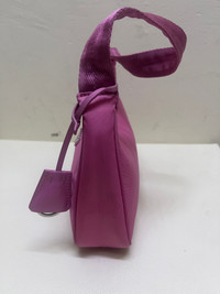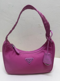 Prada Re-Edition 2000 mini-bag in pink nylon: Description: • Small shoulder bag in pink nylon • Features the Prada triangle logo • Zip-top closure • Short shoulder strap • Light and casual everyday mini bag Measure: • Approx. 22 cm (W) × 17 cm (H) × 6 cm (D)