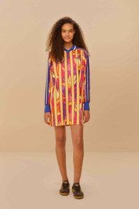 Embrace vibrant elegance with the Adidas Stripes Of Paradise Bold Pink Dress. Bursting with vivid pink and yellow tropical patterns, this dress celebrates playful color and bold artistry. Crafted from responsible materials, its relaxed silhouette and striking embroidery capture attention effortlessly. Accentuated by rich blue trim and iconic stripes, it offers a harmonious balance of lively design and everyday sophistication. Perfect for those who love to express their creative spirit. Since 2014, we have been blending our unique prints with the three most famous stripes in the world, connecting Adidas' urban energy with the essence of Brasil. Discover our new Adidas <3 FARM Rio collection, where modern streetwear meets a print lover's paradise, to stand in the sunshine while connecting with your own light. Ref.: sku_JD6285