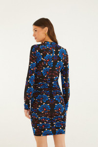 Embrace effortless charm with the Black Latina Scarf Jersey Mini Dress by FARM Rio. This playful piece features a high neckline that gracefully frames the collar, while its soft jersey fabric drapes beautifully over the silhouette. The dress is adorned with vibrant scarf-inspired patterns, blending bold colors and intricate motifs that celebrate Brazilian spirit. Its mini length and fluid fit invite movement, making it a radiant choice for sunlit days and warm evenings alike. - Closure: Invisible Zipper At Center Back - Sleeve type: Long Sleeve Ref.: 357522 Composition 85% VISCOSE 15% ELASTANE Care Instructions MACHINE WASH GENTLE CYCLE, DO NOT BLEACH, DO NOT TUMBLE DRY, LINE DRY, IRON AT LOW HEAT, DRY CLEAN WITH ANY SOLVENT EXCEPT TRICHLOROETHYLENE Fabric origin: Turkey Product manufacturing: Turkey Product printing: Turkey