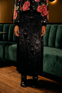 Black Midnight Leopards Jacquard Maxi Skirt