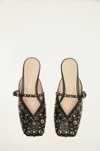 Black Studded Square Toe Ballerina