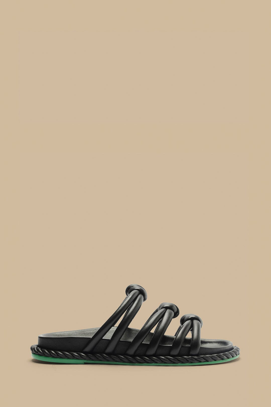 Step into casual elegance with the Black Tie Flat Sandal from FARM Rio. Crafted with attention to detail, this sandal features intricate knots and a beautifully braided sole, adding a playful touch to your ensemble. Its sleek black design pairs effortlessly with any look, while the use of responsible materials ensures you feel good about your style choices. Perfect for those laid-back yet chic days. Ref.: sku_341148 Composition Leather Upper & Sole
