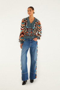 Step into vibrant comfort with the Colorful Stripes Crochet Denim Pants from FARM Rio. These pants blend classic denim with playful crochet panels in lively rainbow stripes, creating a joyful dance of texture and color. The relaxed fit and straight-leg silhouette offer effortless movement, while the handcrafted crochet details bring a touch of artisanal charm. Embrace a fresh, spirited style that feels as bright and warm as a sunny day. Ref.: 344837