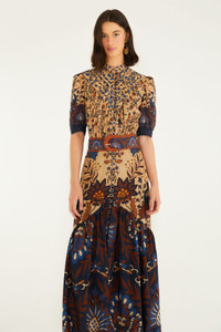 Step into a sunlit day with the Cream Marvelous Garden Short Sleeve Midi Dress from FARM Rio. Its high neckline gracefully frames your silhouette, while the creamy base blooms with vibrant, playful floral patterns. The flowing midi cut moves gently with every step, evoking a carefree spirit. This dress wraps you in warmth and joy, perfect for those who cherish effortless elegance with a touch of Brazilian charm. - Closure: Center Front Buttons - Button type: Fabric Covered Button - Sleeve type: Short Sleeve Ref.: 339851 Composition 53% COTTON 47% VISCOSE Care Instructions MACHINE WASH GENTLE CYCLE, DO NOT BLEACH, DO NOT TUMBLE DRY, LINE DRYING, IRON AT LOW HEAT, DO NOT DRY CLEAN Fabric origin: China Product manufacturing: China Product printing: China