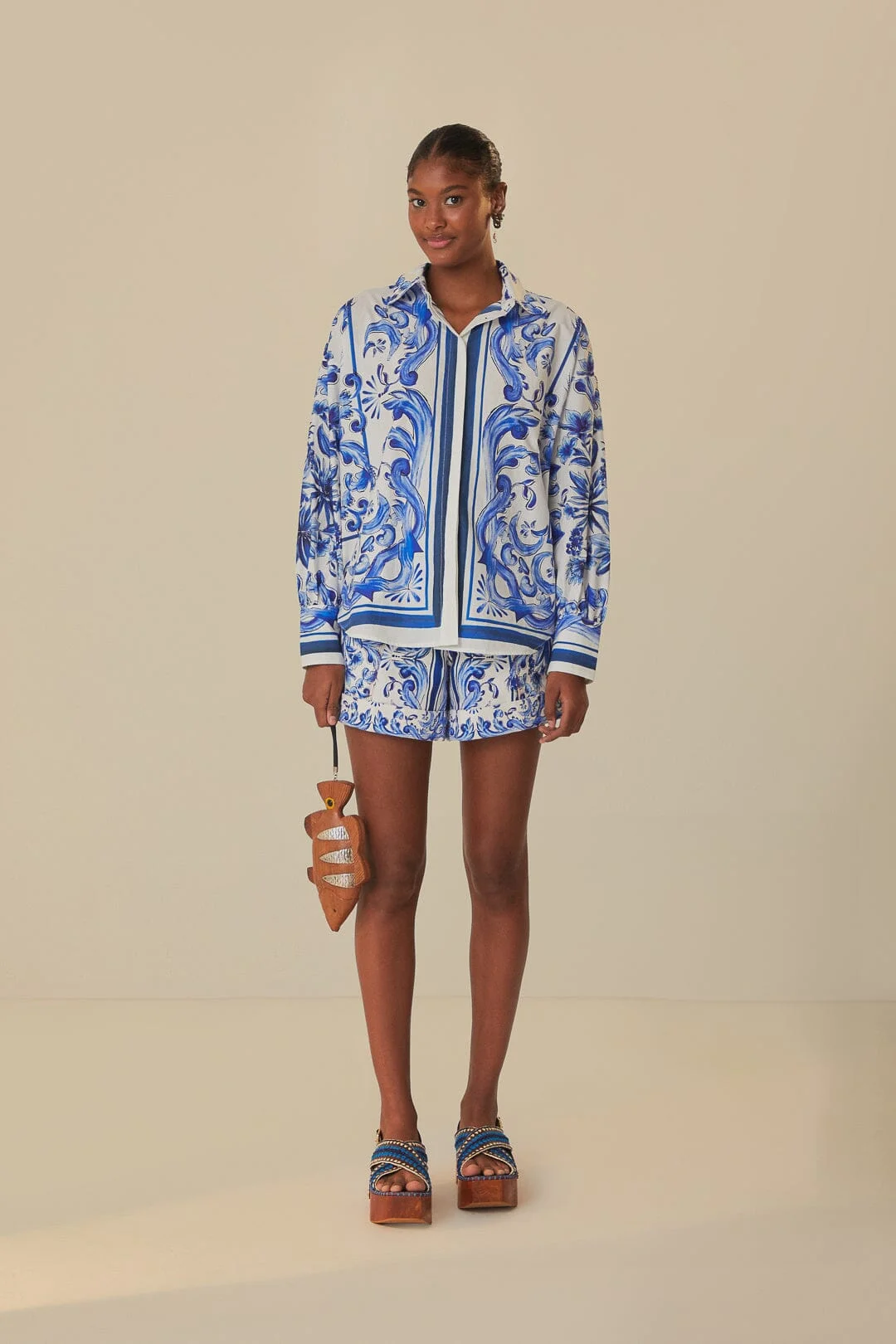 Step into a world of vibrant artistry with the Garden Tiles Plaid Shorts from FARM Rio. These eye-catching shorts feature a bold blue and white porcelain-inspired print, adorned with delicate embroidery that adds a touch of refinement. Crafted with responsibly sourced materials, the design boasts a flattering fit that gracefully accentuates your silhouette. Embrace the charm of these unique shorts, perfect for creating memorable looks with a playful and artistic flair. Ref.: sku_321859 Composition 100% COTTON Care Instructions MACHINE WASH, GENTLE CYCLE, DO NOT BLEACH, TUMBLE DRY LOW, IRON AT LOW HEAT, DRY CLEAN WITH ANY SOLVENT EXCEPT TRICHLOROETHYLENE Fabric origin: CHINA Product manufacturing: CHINA Product printing: CHINA