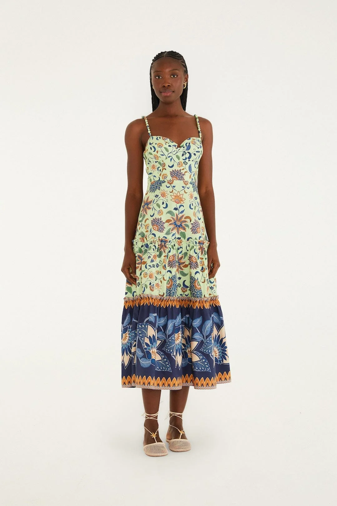 Embrace vibrant charm with the Green Floral Delhi Tapestry Beaded Straps Midi Dress by FARM Rio. This playful midi features a lush floral tapestry pattern in rich greens, accentuated by delicate beaded straps that catch the light with every move. The sweetheart neckline adds a tender, romantic touch, while the flowing silhouette celebrates effortless comfort and joyful elegance—perfect for those who love to wear artful, spirited beauty. - Closure: Invisible Zipper At Side Seam - Sleeve type: Sleeveless Ref.: 353549 Composition 100% COTTON Care Instructions HAND WASH SEPARATELY, DO NOT BLEACH, DO NOT TUMBLE DRY, LINE DRYING, IRON AT LOW HEAT Fabric origin: China Product manufacturing: China Product printing: China
