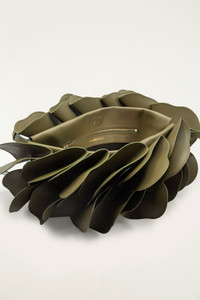 Embrace playful elegance with the Green Leather Shoulder Flower Bag from FARM Rio. Crafted from smooth olive green leather, its standout feature is the captivating three-dimensional petal silhouette that wraps around the bag, evoking the delicate bloom of a flower. The structured yet soft form carries warmth and character, while the single shoulder strap adds ease and charm. This unique design blends nature-inspired artistry with modern style for a truly enchanting accessory. Ref.: 352493