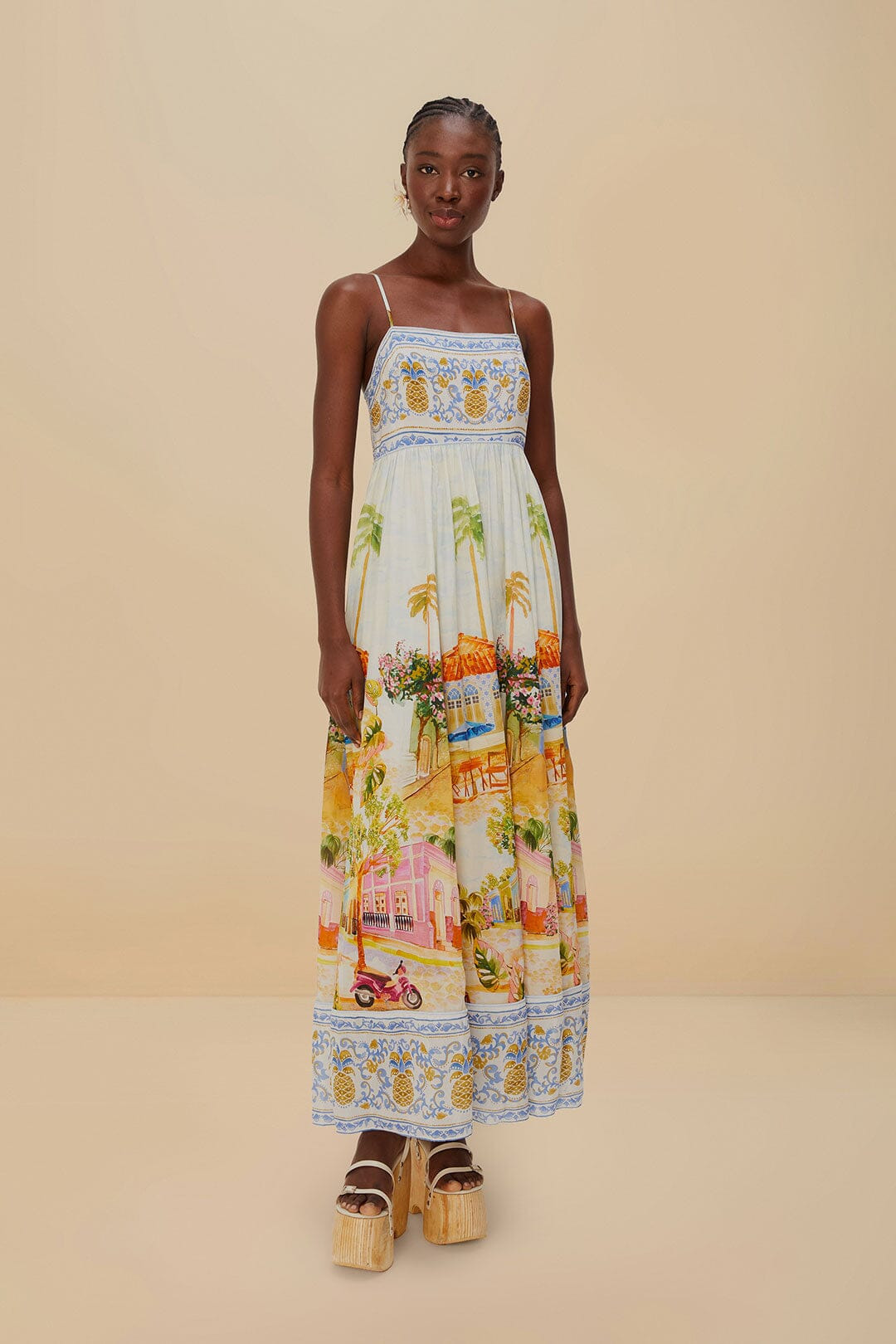 Step into a world of vibrant elegance with the multicolor aracati maxi dress by FARM Rio. Showcasing a mesmerizing fusion of playful hues and exquisite nature-inspired patterns, this dress effortlessly captures the essence of tropical charm. Its flowing silhouette drapes beautifully, while the square neckline adds a touch of classic sophistication. Perfect for sunlit gatherings or moonlit strolls, this maxi dress is a celebration of joyful style. - Closure: Invisible zipper at side seam - Sleeve type: Sleeveless Ref.: sku_336581 Composition 60% COTTON 40% VISCOSE Care Instructions MACHINE WASH GENTLE CYCLE, DO NOT BLEACH, DRY FLAT, IRON AT MEDIUM HEAT, DO NOT DRY CLEAN Product manufacturing: CHINA Product printing: CHINA