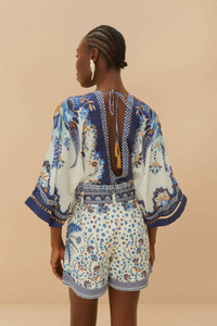 Embrace a burst of tropical charm with our off-white encanto tropical shorts. Adorned with vibrant blue and orange floral embroidery, these shorts capture the playful essence of summer. Made from responsible materials, they feature a flowing silhouette with intricate embroidery that adds a delightful touch. Perfect for brightening up any occasion, these shorts are an invitation to enjoy sunlit adventures in style. FARM Rio Ref.: sku_333079