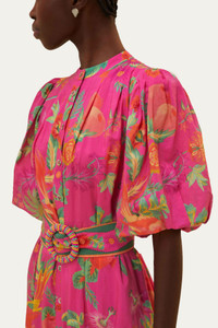 Embrace the vibrant essence of summer with the Pink Delicate Fruit Garden Mini Dress by FARM Rio. This enchanting piece features a round neckline and is adorned with an exuberant fruit and floral pattern set against a vivid pink backdrop. The playful puff sleeves and flirty ruffled hem lend a dash of whimsy, while the cinched waist, accented with a unique, colorful beaded belt, creates a flattering silhouette. Its joyful design ensures you'll stand out in any sun-kissed setting. This image was created using artificial intelligence. Ref.: reorder_drop02 sku_321335 Composition 54% COTTON 46% VISCOSE Care Instructions MACHINE WASH ON DELICATE CYCLE, DO NOT BLEACH, DRY FLAT, IRON AT MEDIUM HEAT, DO NOT DRY CLEAN Fabric origin: TURKEY Product manufacturing: TURKEY Product printing: TURKEY