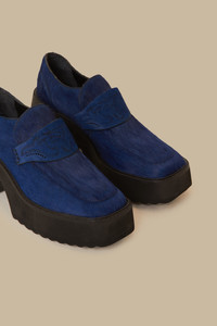 Step into style with our Royal Blue Platform Loafer, a chic and vibrant addition to any outfit. The rich royal blue hue is complemented by intricate embroidery, adding a touch of elegance to the classic loafer silhouette. Crafted from responsible materials, these loafers offer both comfort and conscious fashion. Perfect for adding a pop of color to your wardrobe, these loafers are a must-have for the fashion-forward individual. . Ref.: sku_328578