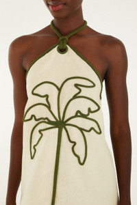 Sand Coconut Embroidery Halter Neck Euroflax™ Premium Linen Mini Dress