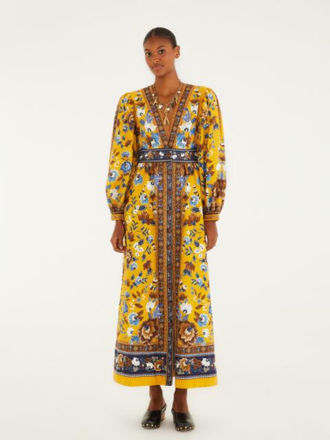 Yellow Flowering Garden Tree Organic Cotton Maxi Dress