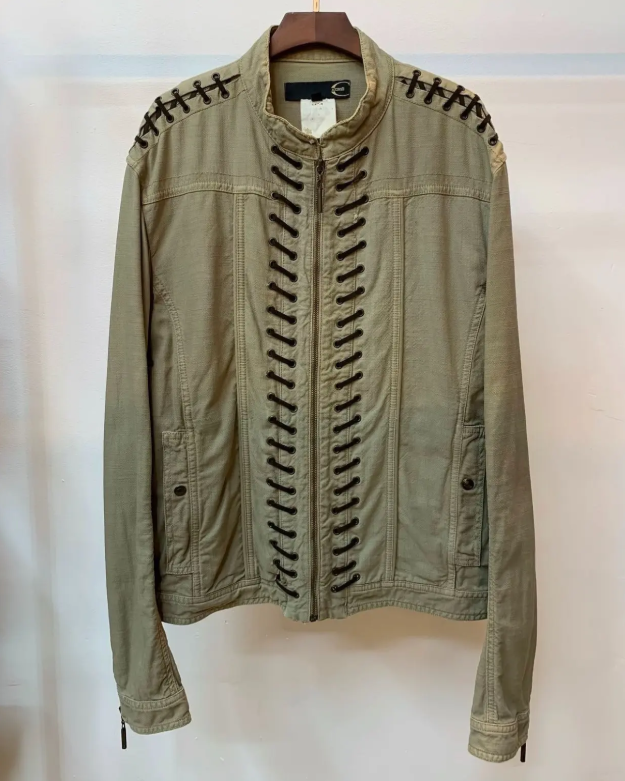 Just Cavalli SS2006 Laces Beige Biker Jacket