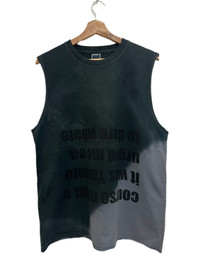 VINTAGE PPFM SLEEVELESS DISTRESSED TANK TOP Bushido Samurai code - course must e it was Yamato urged me on to dare whate Good condition 9/10 Size L