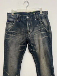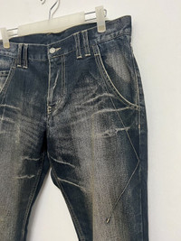 PPFM FLAME STRAIGHT FIT INDIGO DYED DENIM Lining stripe design inside leg Multipocket with zipper on the backside Good condition 9/10 Size 34” - L Measurement Waist 34” Outseam length 44” Inseam 34” Front rise 11”