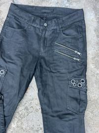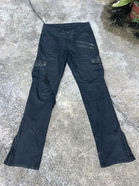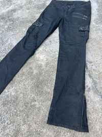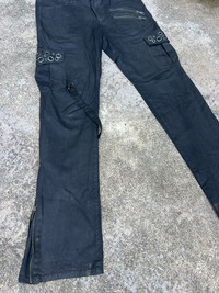 Y2K Civarize Black Flare Cyberpunk Wax Denim Bondage style Good condition 9/10 Size 30”