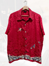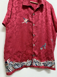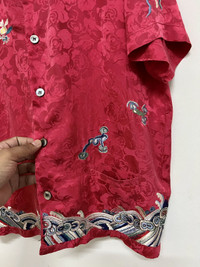 VINTAGE JOHN BULL EMBROIDERY FLORAL MOTIFS SAMPLE SHIRT Rare item japanese tradition design in silk material 1 of 1 sample label as in picture Item in good condition 9/10 pls refer picture carefully Size M