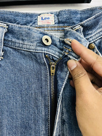 Vintage Lee Union Made Sanforized Denim With leather Lee label Original chainstitch Item in good condition 9.5/10 pls refer picture carefully Made In Japan Size 32