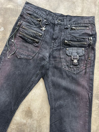 Vintage 2000’s Semantic Design Punk Skull Flared Jeans Wax Style Very rare design, more aggresive style Good condition 9/10 Size 31”