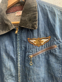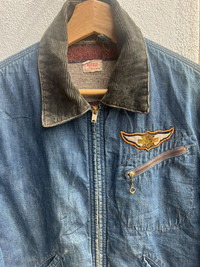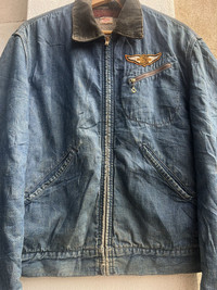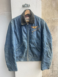 VINTAGE 1950s HERCULES BLANKET LINED DETROIT JACKET SEARS,ROEBUCK AND CO. Comes with original vintage Harley Davidson patch on chest Great blanket lined work jacket One of the best jacket in archive Distressed looks Made in U.S.A. Size L
